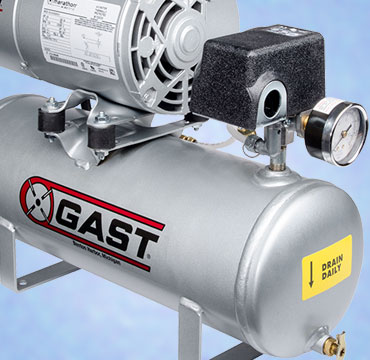 Gast diaphragm pumps are ideal for light-duty applications with relatively low flows (less than 4 cfm free air flow). They are almost silent when in operation.